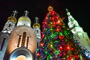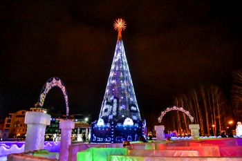 Главное украшение на центральной площади города — Новогодняя елка, состоящая из 4458 элементов. Ее высота составляет 31 метр, а общая длина световой гирлянды с 3D эффектами — 8500 метров. Управление реализовано на новейших микрочипах, это позволяет использовать ее, как огромный видеоэкран с разрешением 85000 пикселей. Тумба с основанием — это тоже декоративный арт-объект со светодиодной ажурной подсветкой. Монтаж уникальной елки занял 10 дней, и аналогов в России пока нет.