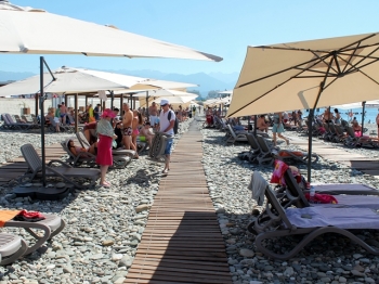 (Х.К.): Город Сочи — флагман курортов Краснодарского края, поэтому, конечно, и максимальна протяженность пляжных территорий. Около 190 пляжей располагаются на побережье Сочи. Однако — это далеко не все пляжи края. В целом в регионе оборудовано и благоустроено около 96 км Азово-Черноморского побережья. Морской отдых в крае пользуются повышенным спросом туристов, и в пик сезона переуплотнение пляжей достигает 4–5 раз.