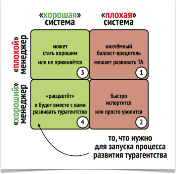 Нанимая менеджера по туризму, директор агентства думает, что он уже дал подчинённому всё необходимое: «компьютер у тебя есть, интернет есть, заявки я тебе обеспечиваю — работай!» Но на самом деле, это не так.