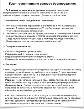 Вот, например, сценарий эфира, который использовали наши клиенты-турагенты, участвовашие в программе «Туристы На Всю Жизнь 4.0»: